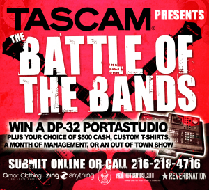 Bands that advance from a first round will go on to the Finals round, where they’ll compete for great prizes and have the chance to play for an even bigger crowd. Bands that win FIRST PLACE at a Battle of the Bands Finals will receive a TASCAM DP-32 Digital Portastudio plus as well as a second prize of their choosing. Remember, judging for The Battle of the Bands will take place at the end of the show after the last band has played. Judging is based on crowd response, so be sure to stick around until the end of the show!